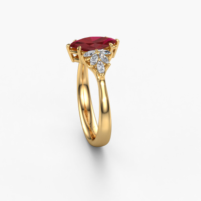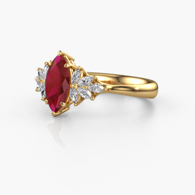 This 14 Carat gold ring is called Fiona MRQ and is set with 10x5 mm ruby. Are you looking for a unique gold engagement ring which you can customize to your own liking? This unique engagement ring is set with ruby which is carefully selected for this specific ring in order to create the best effect. Our expert goldsmith will create your ring in our own crafting studio, where the ruby will be set with great care. The ring will then be polished till it shines perfectly. Nothing but the best for the love of your life! The great thing about our online tool is, that you can compile your own jewelry into a unique, personalized piece. Each piece of jewelry is made just for you by our master goldsmiths in our own studio.By using a combination of the latest modern techniques, combined with ancient crafting, we can make all our engagement rings in our own studio. Each jewel is made to order. This is advantageous because we can offer you a price you won't find anywhere else.Our designers and goldsmiths work together each day, creating new jewels. Perhaps you have found a nice unique engagement ring somewhere, which can be used to customize your unique ring. Please feel free to contact us. We will make you an offer, based on a fair price/ quality ratio, which will amaze you.To make it easier for you, we offer a 30 day return policy. Check our terms and conditions.