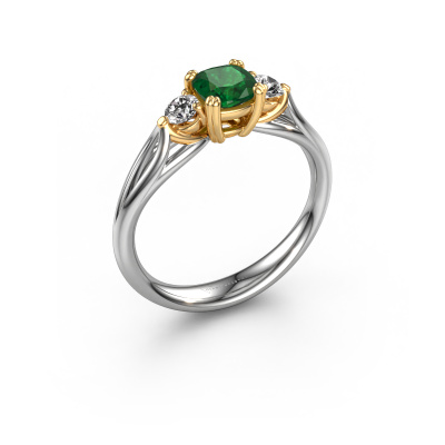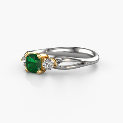 This 14 Carat white gold ring is called Amie cus and is set with 5 mm emerald. Does your girlfriend fancy exclusive jewelry? Or would you like to show her that she deserves the finest jewelry? This white gold ring is pure craftsmanship, love and passion combined with the latest techniques coming together in perfect harmony. It requires a keen eye, patience and a skillful hand to mold this ring into perfection. Just the job for our expert goldsmith! The emeralds set gemstones gives this white gold ring an extra glamorous appearance. Customize the style of the ajour engagement ring to her liking with a wide variety of precious metals and gemstones which you select. That is how you create a unique ring for the most exclusive woman in your life! This jewel is made just for you, with attention to detail and design.After receiving your order, our goldsmiths will passionately start the creative process of making your engagement ring in our own studio. Because we don't have a big stockpile, these costs will not be passed on to you. Our pricing is proof of that! We offer top quality jewels at lowest price, guaranteed.Have you found a specific engagement ring somewhere which you would like to give to your loved one? Please feel free to express your wishes to our jewel designers because we would be honored to turn your design into a fantasy engagement ring. You can follow the development of your ring design because we use 3D drawings. This gives you a realistic preview of how your design will look. You can also preorder a dummy. A dummy is a plastic ring, which can be shaped according your ring design. You can try it on and check if its width and size are suitable for you. We will gladly send you a non-binding offer, based on a fair price/ quality ratio. It will amaze you, considering the quality of the ring and gemstones.To make it easier for you, we offer a 30 day return policy. Check our terms and conditions.