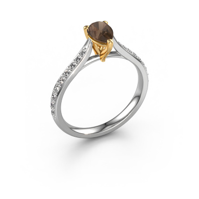 The ring shown above is called the Mignon per 2. We call this type of ring a pavé solitaire ring because it has one center gemstone and a band that is also pave set with gemstones. The 14 Carat white gold engagement ring is set with a pear 6.5x4.5 mm smokey quartz center stone and the band is pave set with diamond gemstones. Each jewel is made just for you by our master goldsmiths in our own studio.This trendy white gold pavé solitaire engagement ring has an exquisite pear smokey quartz center stone. To further accentuate the center stone, the band is fully set with more diamonds. Its open prong setting allows light to strike the smokey quartz from various angles and this adds sparkle to your smokey quartz ring. The photo shown above depicts the goldsmith's carefully handcrafted details of the ring. The high positioning of the center stone is truly eye-catching. The perfect engagement ring for the crown jewel of your life! Are you on a budget? Please feel free to contact us, so we can go discuss your options. We offer our engagement rings at guaranteed best price, because we make them to order. You won't find such a price anywhere else!Our team adds new designs to our online collection daily. Our designers and goldsmiths work together in creating the best design. We strive to offer a diverse collection of jewels. Perhaps you have a specific jewel design in mind. One you came across somewhere. Please contact us for a free consultation. We will make you an offer, based on a fair price/ quality ratio, that will baffle you.To make it easier for you, we offer a 30 day return policy. Check our terms and conditions.
