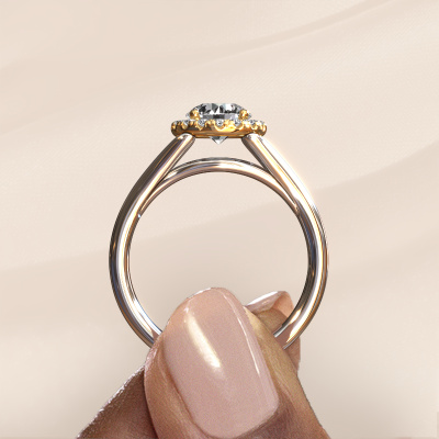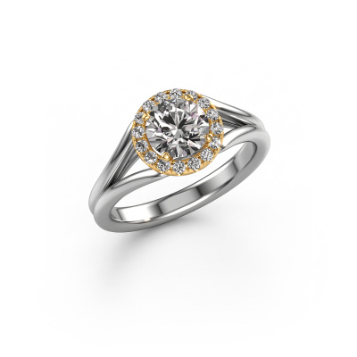 The ring shown above is called the Verla rnd 1. We call this type of ring a halo ring because it has one center gemstone and a band that is also pave set with gemstones. The 14 Carat white gold engagement ring is set with a round 1.00 crt diamond center stone and the band is pave set with diamonds. What makes this classic white gold halo ring special are the smaller sized stones embracing the center stone. This gorgeous engagement ring is called a halo ring because the smaller gemstones give the center stone a halo of surrounding light. In order for the smaller stones to enhance the center stone, they have to be placed so there is no interference of light. And that's when our expert goldsmiths come in. Each individual stone is carefully set in the ring by hand. During manufacturing, light fall is constantly monitored to make sure the special halo is still visible. In the end you get a unique engagement ring, with a diamond of your choosing at its centre. You can imagine the effect of a ring of such significance when you give it to her on her special day to shine. By using a combination of the latest modern techniques, combined with ancient crafting, we can make all our engagement rings in our own studio. Each jewel is made to order. This is advantageous because we can offer you a price you won't find anywhere else.Our team adds new designs to our online collection daily. Our designers and goldsmiths work together in creating the best design. We strive to offer a diverse collection of jewels. Perhaps you have a specific jewel design in mind. One you came across somewhere. Please contact us for a free consultation. We will make you an offer, based on a fair price/ quality ratio, that will baffle you.To make it easier for you, we offer a 30 day return policy. Check our terms and conditions.