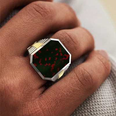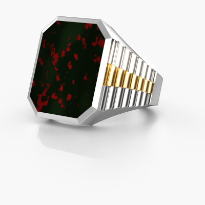 Everyone knows the design of this well-known watch brand. With two colors of white gold links, this heavy 14 Carat white gold Brent 5 signet ring, is perfectly suited for trendy, successful men. A man who wants to dress to impress with a striking signet ring with 18x15 mm bloodstone. Show them what you are made of!The cool Brent 5 signet ring, as shown here, can be customized to your liking. Our online tool offers many different options but please feel free to contact us if you want changes made to your Brent 5 signet ring, which are unavailable in our online tool.Our team of talented, passionate designers add new ring designs to our online collection daily. Our objective in doing so, is to be able to offer you a wide variety of jewels. Please feel free to request a quote if you have specific wishes for your ring. We guarantee to make you an offer you can't refuse.By using our modern techniques, we can design and customize the finest quality jewels with the utmost care for you. Our rings are always priced 30 percent lower than other jewelers. We make rings to order, so we don't have to maintain a large stock. If you have a certain budget, we are more than happy to advice you accordingly.To make it easier for you, we offer a 30 day return policy. Check our terms and conditions.