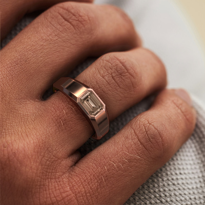 Are you looking for a exclusive rose gold men's ring that is slightly different? Then our rectangular rose gold brown diamond set Dylan 1 men's ring is the perfect ring for you! This ring, as shown here, is made of rose gold but feel free to customize to your liking. Show them what you are all about with this rose gold brown diamonds Dylan 1 men's ring, a ring for ambitious men. Our goldsmiths passionately create your customized men's ring to your liking with the utmost care. The rose gold men's ring, as shown here, can be customized using our online tool. Feel free to ask our jewel designers for assistance if you want changes made which are unavailable in our online tool. We are happy to answer your questions.Our team of talented, passionate designers add new ring designs to our online collection daily. Our objective in doing so, is to be able to offer you a wide variety of jewels. Please feel free to request a quote if you have specific wishes for your ring. We guarantee to make you an offer you can't refuse.By using a combination of the latest modern techniques, combined with ancient crafting, we can make all our rings in our own studio. Each jewel is made to order. This is advantageous because we can offer you a price you won't find anywhere else.To make it easier for you, we offer a 30 day return policy. Check our terms and conditions.