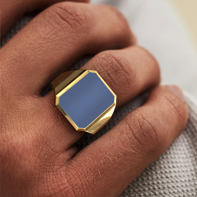 The solid Lars 4 signet ring with octagon blue sardonyx stone top, as shown above, is filled with tradition. Customary, the signet ring was passed down from father to son. Start your own tradition with this solid gold signet ring. We are also more than happy to engrave your ring with a monogram or family crest. Please check our database for further inquiries and options. You can find the departments of our education center at the bottom of this page. Start a new tradition with the classic gold Lars 4 signet ring. Our goldsmiths passionately create your customized signet ring to your liking with the utmost care. The gold signet ring, as shown here, can be customized using our online tool. Feel free to ask our jewel designers for assistance if you want changes made which are unavailable in our online tool. We are happy to answer your questions.Our team of talented, passionate designers add new ring designs to our online collection daily. Our objective in doing so, is to be able to offer you a wide variety of jewels. Please feel free to request a quote if you have specific wishes for your ring. We guarantee to make you an offer you can't refuse.Are you on a budget? Please feel free to contact us, so we can go discuss your options. We offer our rings at guaranteed best price, because we make them to order. You won't find such a price anywhere else!To make it easier for you, we offer a 30 day return policy. Check our terms and conditions.