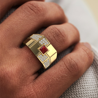 Dress to impress with this rectangular Rogier men's ring, because with the right ring you make a strong personal statement. This Rogier cool men's ring is shown in 14 Carat gold. If this doesn't suit your style, feel free to customize the precious metal to your liking. After all, you want a men's ring that matches your style. A ring that truly suits you. One saying: This is who I am!The cool Rogier men's ring, as shown here, can be customized to your liking. Our online tool offers many different options but please feel free to contact us if you want changes made to your Rogier men's ring, which are unavailable in our online tool.Our talented designers add new designs to our online collection daily. Together they create a diverse collection of the finest jewelry. If you prefer to make a ring according your own design, please feel free to request a quote. We will make you an amazing offer, based on quality and price.After receiving your order, our goldsmiths will start the creative process of making your Rogier ring. We don't keep stock. This is advantageous because these costs will not be passed on to you. Therefore, we can offer jewelry at exceptionally low prices.To make it easier for you, we offer a 30 day return policy. Check our terms and conditions.
