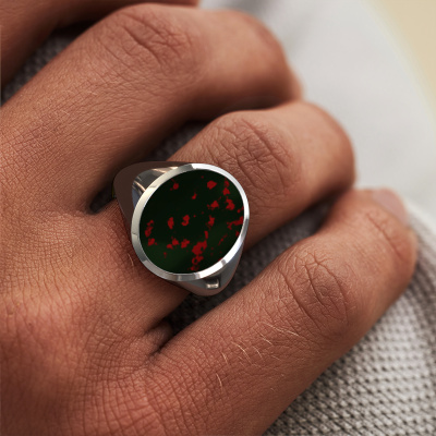 The heavy Herman 6 signet ring with oval shape bloodstone stone top, as shown above, is filled with tradition. Customary, the signet ring was passed down from father to son. Start your own tradition with this heavy platinum signet ring. We are also more than happy to engrave your ring with a monogram or family crest. Please check our database for further inquiries and options. You can find the departments of our education center at the bottom of this page. Start a new tradition with the modern platinum Herman 6 signet ring. How do you like this modern platinum signet ring? Simply customize this Herman 6 signet ring, using our online tool. Subsequently, your personal cool Herman 6 signet ring will be made by hand by our goldsmiths. Precious metals and gemstones can be customized to your liking. Do you have specific preferences which are unavailable in our online tool? Please feel free to contact us. We will customize your personal modern signet ring to your liking.Our team of talented, passionate designers add new ring designs to our online collection daily. Our objective in doing so, is to be able to offer you a wide variety of jewels. Please feel free to request a quote if you have specific wishes for your ring. We guarantee to make you an offer you can't refuse.Because we design and deliver our own rings, we can offer you a ring at a price you won't find anywhere else. A ring is made to order, which helps prevent excess supplies, so we can make you a great price offer. We understand it feels risky, buying your ring online, but we will gladly assist in the designing process, taking your budget into consideration.To make it easier for you, we offer a 30 day return policy. Check our terms and conditions.