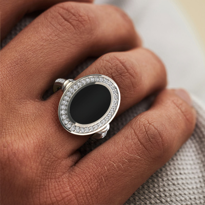 The oval Servie 3 men's ring with oval shape onyx stone top, as shown above, is filled with tradition. Customary, the men's ring was passed down from father to son. Start your own tradition with this oval platinum men's ring. We are also more than happy to engrave your ring with a monogram or family crest. Please check our database for further inquiries and options. You can find the departments of our education center at the bottom of this page. Start a new tradition with the exclusive platinum Servie 3 men's ring. As soon as you finished designing your Servie 3 [typehr2] with our online tool, our goldsmiths will start their creative process of making your ring. This will be done with passion and care, according ancient crafting. On top of that, our jewels are made of eco-friendly materials. Simply customize online with our online tool, if you want any changes made. If you want specific changes made to your Servie 3 [typehr2], that are unavailable in our online tool, please feel free to contact our expert designers.New jewelry designs are added to our online collection daily. Our team of passionate designers strive to create extraordinary and diverse designs. Have you seen a ring you like? Please feel free to contact us. Based on a good price/ quality ratio, we will make you an offer you can't refuse!After receiving your order, our goldsmiths will passionately start the creative process of making your ring in our own studio. Because we don't have a big stockpile, these costs will not be passed on to you. Our pricing is proof of that! We offer top quality jewels at lowest price, guaranteed.To make it easier for you, we offer a 30 day return policy. Check our terms and conditions.