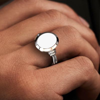 The oval Jake 2 signet ring with oval shape white enamel stone top, as shown above, is filled with tradition. Customary, the signet ring was passed down from father to son. Start your own tradition with this oval platinum signet ring. We are also more than happy to engrave your ring with a monogram or family crest. Please check our database for further inquiries and options. You can find the departments of our education center at the bottom of this page. Start a new tradition with the traditional platinum Jake 2 signet ring. As soon as you finished designing your Jake 2 signet ring with our online tool, our goldsmiths will start their creative process of making your ring. This will be done with passion and care, according ancient crafting. On top of that, our jewels are made of eco-friendly materials. Simply customize online with our online tool, if you want any changes made. If you want specific changes made to your Jake 2 signet ring, that are unavailable in our online tool, please feel free to contact our expert designers.New jewelry designs are added to our online collection daily. Our team of passionate designers strive to create extraordinary and diverse designs. Have you seen a ring you like? Please feel free to contact us. Based on a good price/ quality ratio, we will make you an offer you can't refuse!Are you on a budget? Please feel free to contact us, so we can go discuss your options. We offer our rings at guaranteed best price, because we make them to order. You won't find such a price anywhere else!To make it easier for you, we offer a 30 day return policy. Check our terms and conditions.