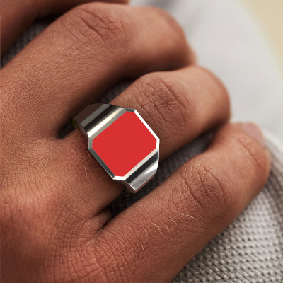 The rectangular Lars 2 signet ring with octagon red enamel stone top, as shown above, is filled with tradition. Customary, the signet ring was passed down from father to son. Start your own tradition with this rectangular platinum signet ring. We are also more than happy to engrave your ring with a monogram or family crest. Please check our database for further inquiries and options. You can find the departments of our education center at the bottom of this page. Start a new tradition with the traditional platinum Lars 2 signet ring. The affordable Lars 2 signet ring, as shown here, can be customized to your liking. Our online tool offers many different options but please feel free to contact us if you want changes made to your Lars 2 signet ring, which are unavailable in our online tool.Our team of talented, passionate designers add new ring designs to our online collection daily. Our objective in doing so, is to be able to offer you a wide variety of jewels. Please feel free to request a quote if you have specific wishes for your ring. We guarantee to make you an offer you can't refuse.By using our modern techniques, we can design and customize the finest quality jewels with the utmost care for you. Our rings are always priced 30 percent lower than other jewelers. We make rings to order, so we don't have to maintain a large stock. If you have a certain budget, we are more than happy to advice you accordingly.To make it easier for you, we offer a 30 day return policy. Check our terms and conditions.