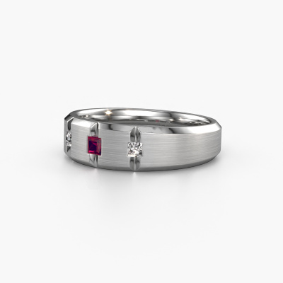Are you looking for a modern white gold men's ring that is slightly different? Then our wide white gold rhodolite set Justin men's ring is the perfect ring for you! This ring, as shown here, is made of white gold but feel free to customize to your liking. Show them what you are all about with this white gold rhodolite Justin men's ring, a ring for ambitious men. Customize your own edgy Justin men's ring, which will then be created by our goldsmiths with great passion. Do you prefer a different option than is shown here in the white gold Justin men's ring? Then our online tools offers various options. Feel free to ask us for help if you are unable to succeed. We are happy to answer your questions!