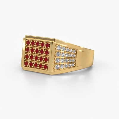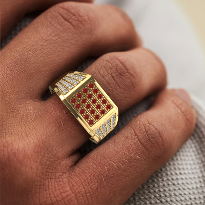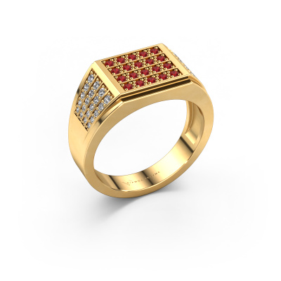 Are you looking for a modern gold men's ring that is slightly different? Then our rectangular gold ruby set Tim men's ring is the perfect ring for you! This ring, as shown here, is made of gold but feel free to customize to your liking. Show them what you are all about with this gold ruby Tim men's ring, a ring for ambitious men. The special Tim men's ring, as shown here, can be customized to your liking. Our online tool offers many different options but please feel free to contact us if you want changes made to your Tim men's ring, which are unavailable in our online tool.New jewelry designs are added to our online collection daily. Our team of passionate designers strive to create extraordinary and diverse designs. Have you seen a ring you like? Please feel free to contact us. Based on a good price/ quality ratio, we will make you an offer you can't refuse!By using a combination of the latest modern techniques, combined with ancient crafting, we can make all our rings in our own studio. Each jewel is made to order. This is advantageous because we can offer you a price you won't find anywhere else.To make it easier for you, we offer a 30 day return policy. Check our terms and conditions.