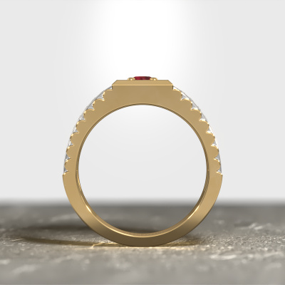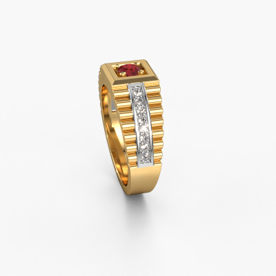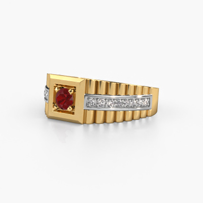 Everyone knows the design of this well-known watch brand. With two colors of gold links, this wide 14 Carat gold Maikel men's ring, is perfectly suited for trendy, successful men. A man who wants to dress to impress with a striking men's ring with 4.2 mm ruby. Show them what you are made of!Our goldsmiths passionately create your customized men's ring to your liking with the utmost care. The gold men's ring, as shown here, can be customized using our online tool. Feel free to ask our jewel designers for assistance if you want changes made which are unavailable in our online tool. We are happy to answer your questions.