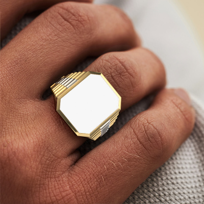Everyone knows the design of this well-known watch brand. With two colors of gold links, this 2 Colors 14 Carat gold Brent 4 signet ring, is perfectly suited for trendy, successful men. A man who wants to dress to impress with a striking signet ring with 16x13 mm white enamel. Show them what you are made of!Customize your own luxury Brent 4 signet ring, which will then be created by our goldsmiths with great passion. Do you prefer a different option than is shown here in the gold Brent 4 signet ring? Then our online tools offers various options. Feel free to ask us for help if you are unable to succeed. We are happy to answer your questions!Our team of talented, passionate designers add new ring designs to our online collection daily. Our objective in doing so, is to be able to offer you a wide variety of jewels. Please feel free to request a quote if you have specific wishes for your ring. We guarantee to make you an offer you can't refuse.Are you on a budget? Please feel free to contact us, so we can go discuss your options. We offer our rings at guaranteed best price, because we make them to order. You won't find such a price anywhere else!To make it easier for you, we offer a 30 day return policy. Check our terms and conditions.
