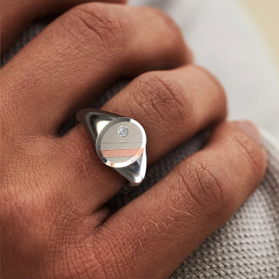 For the contemporary, stylish man that likes a bit of extravagance, we offer the solid 14 Carat white gold Wesley 1 pinky ring with lab-grown diamond. Traditionally a pinky ring was worn as a sign of wealth. That is why a pink ring is perfectly suited for men who want to stand out. The affordable Wesley 1 signet ring, as shown here, can be customized to your liking. Our online tool offers many different options but please feel free to contact us if you want changes made to your Wesley 1 signet ring, which are unavailable in our online tool.Our team of talented, passionate designers add new ring designs to our online collection daily. Our objective in doing so, is to be able to offer you a wide variety of jewels. Please feel free to request a quote if you have specific wishes for your ring. We guarantee to make you an offer you can't refuse.Are you on a budget? Please feel free to contact us, so we can go discuss your options. We offer our rings at guaranteed best price, because we make them to order. You won't find such a price anywhere else!To make it easier for you, we offer a 30 day return policy. Check our terms and conditions.