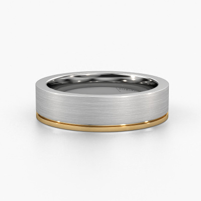 How do you like this wide modern wedding ring? This unique wedding ring is made in our own crafting studio. By using a unique combination of pure craftsmanship and the latest modern techniques, our goldsmiths are able to create the perfect 2 color wedding ring for you in our own artisan studio. Resulting in an exquisite WH0550M16CMP wedding ring, a true representation of the love you share. This wide white gold men's wedding ring with flat profile has an width of ±0.24 in (6 mm) and has a mat/shiny finish.