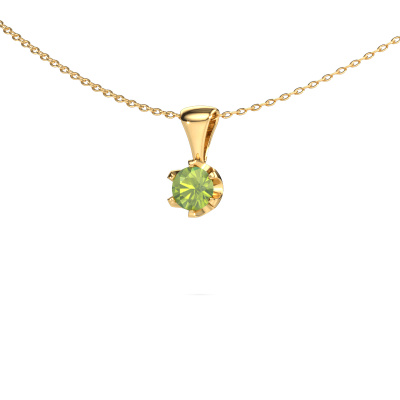 This solitaire necklace Fran is both a classic and a trendy piece of jewelry. A solitaire pendant has an open prong setting, therefore, light reflects beautifully on the gemstone. Because the peridot is set high, this classic necklace is a stunning eye-catcher. We will create your charming necklace by hand with the utmost care in our DiamondsByMe studio. For maximum shine, our goldsmith sets the peridot in the gold necklace with great care. This charming necklace is set with round 5 mm peridot. A customized classic charming necklace is the perfect gift! New exquisite designs are added daily by our team of passionate goldsmiths. And each design can be customized. Simply customize the precious metals and the color of gemstones which will be used, for example. This makes your design of the classic Fran necklace truly unique!