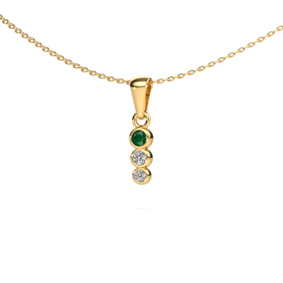 What a beautiful, contemporary pendant! A trendy pendant to finish your outfit. Buy it from DiamondsByMe. Our goldsmiths use the finest precious metals and gemstones to create our most extraordinary pieces of jewelry. Take this modern gold emerald set Felica pendant, for example. It was selected with great care, because your pendant should only be adorned with the finest emeralds. Our goldsmith will make your pendant by hand and will set the emerald with great precision. Then it will be finished and polished to perfection, leaving you with a stunning pendant as a result!A customized modern trendy pendant is the perfect gift! New exquisite designs are added daily by our team of passionate goldsmiths. And each design can be customized. Simply customize the precious metals and the color of gemstones which will be used, for example. This makes your design of the modern Felica pendant truly unique!