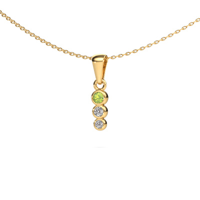 What a beautiful, contemporary pendant! A trendy pendant to finish your outfit. Buy it from DiamondsByMe. Our goldsmiths use the finest precious metals and gemstones to create our most extraordinary pieces of jewelry. Take this modern gold peridot set Felica pendant, for example. It was selected with great care, because your pendant should only be adorned with the finest peridot. Our goldsmith will make your pendant by hand and will set the peridot with great precision. Then it will be finished and polished to perfection, leaving you with a stunning pendant as a result!A customized modern trendy pendant is the perfect gift! New exquisite designs are added daily by our team of passionate goldsmiths. And each design can be customized. Simply customize the precious metals and the color of gemstones which will be used, for example. This makes your design of the modern Felica pendant truly unique!