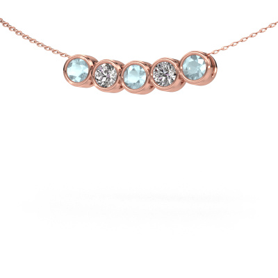 How would you describe your style? Do you like things slightly different? At the very least, this elegant rose gold necklace Kim 5 is unique, made especially by jewel designers. Our goldsmith will create your pendant to perfection by hand in our own artisan studio. This fashionable necklace is set with a aquamarine. These aquamarine are selected with great care because we believe your elegant necklace should be adorned with nothing less than the finest gemstones available. Wouldn't you agree?What could possibly be more beautiful than a personally designed fashionable necklace, handmade by yours truly? Please, feel free to customize each model by choosing different precious metals and gemstones. This makes your necklace truly unique. This necklace can be customized to your liking. It goes without saying that you can also ask us for help. We are more than willing to assist in designing your Kim 5 fashionable necklace. If you like but still have specific wishes concerning customizing your design, such as adding a gemstone which isn't mentioned in the list, feel free to contact us. We will gladly inform you on different options.