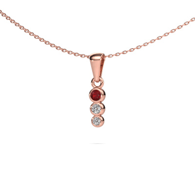 What a beautiful, contemporary pendant! A trendy pendant to finish your outfit. Buy it from DiamondsByMe. Our goldsmiths use the finest precious metals and gemstones to create our most extraordinary pieces of jewelry. Take this modern rose gold ruby set Felica pendant, for example. It was selected with great care, because your pendant should only be adorned with the finest ruby. Our goldsmith will make your pendant by hand and will set the ruby with great precision. Then it will be finished and polished to perfection, leaving you with a stunning pendant as a result!A customized modern trendy pendant is the perfect gift! New exquisite designs are added daily by our team of passionate goldsmiths. And each design can be customized. Simply customize the precious metals and the color of gemstones which will be used, for example. This makes your design of the modern Felica pendant truly unique!