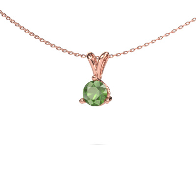What a beautiful, contemporary pendant! A solitaire pendant to finish your outfit. Buy it from DiamondsByMe. Our goldsmiths use the finest precious metals and gemstones to create our most extraordinary pieces of jewelry. Take this classic rose gold tourmaline green set Somer pendant, for example. It was selected with great care, because your pendant should only be adorned with the finest tourmaline green. Our goldsmith will make your pendant by hand and will set the tourmaline green with great precision. Then it will be finished and polished to perfection, leaving you with a stunning pendant as a result!A customized classic solitaire pendant is the perfect gift! New exquisite designs are added daily by our team of passionate goldsmiths. And each design can be customized. Simply customize the precious metals and the color of gemstones which will be used, for example. This makes your design of the classic Somer pendant truly unique!Our team of talented, passionate designers add new pendant designs to our online collection daily. Our objective in doing so, is to be able to offer you a wide variety of jewels. Please feel free to request a quote if you have specific wishes for your pendant. We guarantee to make you an offer you can't refuse.Because we design and deliver our own pendants, we can offer you a pendant at a price you won't find anywhere else. A pendant is made to order, which helps prevent excess supplies, so we can make you a great price offer. We understand it feels risky, buying your pendant online, but we will gladly assist in the designing process, taking your budget into consideration.To make it easier for you, we offer a 30 day return policy. Check our terms and conditions.
