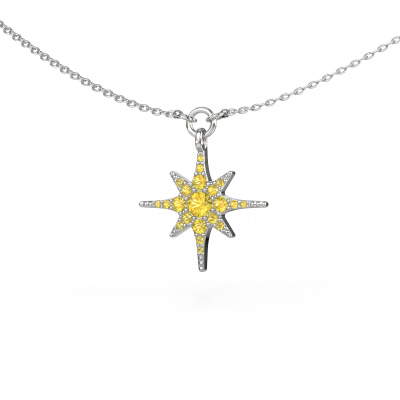 How would you describe your style? Do you like things slightly different? At the very least, this star white gold necklace Star is unique, made especially by jewel designers. Our goldsmith will create your pendant to perfection by hand in our own artisan studio. This trendy necklace is set with a yellow sapphire. These yellow sapphire are selected with great care because we believe your star necklace should be adorned with nothing less than the finest gemstones available. Wouldn't you agree?A customized trendy star necklace is the perfect gift! New exquisite designs are added daily by our team of passionate goldsmiths. And each design can be customized. Simply customize the precious metals and the color of gemstones which will be used, for example. This makes your design of the trendy Star necklace truly unique!