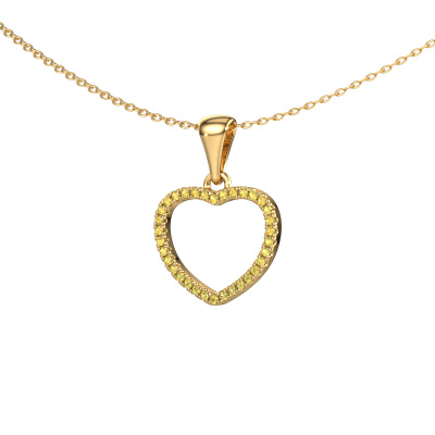 Let your heart speak with this gorgeous heart Heart 6 pendant. Made of gold and adorned with the most beautiful yellow sapphire. Keep your loved one close to your heart, and have your heart shaped pendant crafted by the DiamondsByMe goldsmiths. This heart shaped pendant is an exquisite gift for a loved one, or yourself! This pendant is made by hand by our goldsmith in our own DiamondsByMe studio. Due to a unique combination of the latest modern techniques and ancient craftsmanship we are able to create your heart shaped pendant to perfection. And that is what excites our goldsmiths, because only the finest piece of jewelry will do! We also carefully select our yellow sapphire and each yellow sapphire of your heart shaped pendant is set with great care to create maximum shine. A uniquely handmade heart shaped pendant with a stunning yellow sapphire is what you end up with. A customized fantasy heart pendant is the perfect gift! New exquisite designs are added daily by our team of passionate goldsmiths. And each design can be customized. Simply customize the precious metals and the color of gemstones which will be used, for example. This makes your design of the fantasy Heart 6 pendant truly unique!