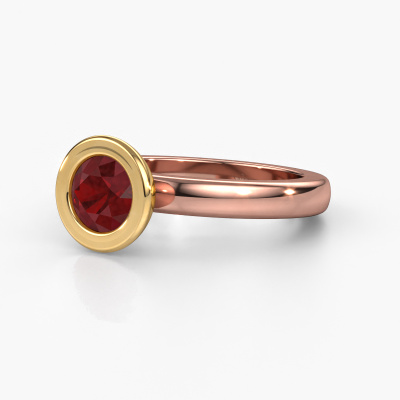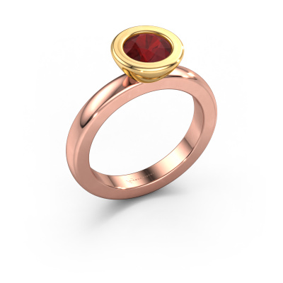 Stacked rings are the perfect addition to your ring collection. They are very popular! This 14 Carat rose gold stacking ring with round ruby can be combined with other stacked rings or a ring you currently own. A stacked ring is a perfect reminder of a memorable moment or a loved one. Stack the milestones in your life and let the rings do the talking. This 1 stone stacking ring is called Eloise Round. It was designed by our own expert goldsmiths and we still make it by hand in our own artisan studio. Simply customize to your liking!A customized trendy stacking ring is the perfect gift! New exquisite designs are added daily by our team of passionate goldsmiths. And each design can be customized. Simply customize the precious metals and the color of gemstones which will be used, for example. This makes your design of the trendy Eloise Round stacking ring truly unique!After receiving your order, our goldsmiths will passionately start the creative process of making your ring in our own studio. Because we don't have a big stockpile, these costs will not be passed on to you. Our pricing is proof of that! We offer top quality jewels at lowest price, guaranteed.To make it easier for you, we offer a 30 day return policy. Check our terms and conditions.