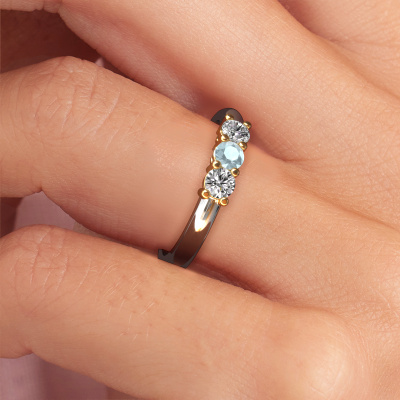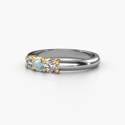 This extraordinary ring is called Michelle 3. This type of ring is known as a memoire ring, because its gemstones are set in a continuous line. This makes it easy to combine with other rings. The band of this 14 Carat white gold ring is set in a combination of aquamarine and lab-grown diamond 3.7 mm. You can easily choose the combination you prefer online. As you can see, a single aquamarine is set in this single alliance white gold ring. The memoire ring represents collaboration. And that is precisely what these gemstones do, collaborate. Together they add a beautiful effect to the band of a classic ring! Such a meaningful ring, wouldn't you agree? All of our hand selected aquamarine are positioned by hand by our expert goldsmith. It's a precise task, which can only be completed successfully through the combination of pure craftsmanship and usage of the latest techniques which give it an optimal effect. To create a perfect reflection of light, all the gemstones have to be perfectly aligned in the same way. During manufacturing, the expert goldsmith will therefore monitor the reflection of light constantly to check whether the aquamarine are aligned properly. This requires a skilled hand and a lot of patience but then the end product will be a true piece of art. And that is our mission!Are you on a budget? Please feel free to contact us, so we can go discuss your options. We offer our rings at guaranteed best price, because we make them to order. You won't find such a price anywhere else!