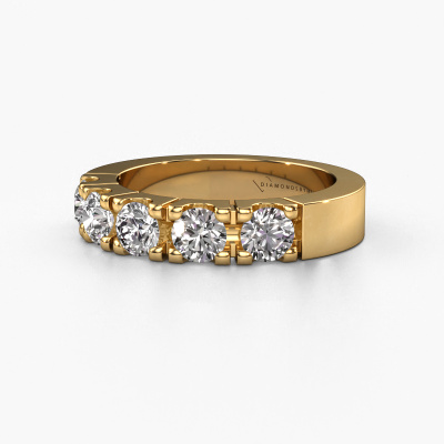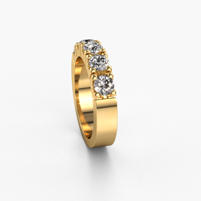 This extraordinary ring is called Dana 5. This type of ring is known as a memoire ring, because its gemstones are set in a continuous line. This makes it easy to combine with other rings. The band of this 14 Carat gold ring is set in a combination of diamond and diamond 1.50 crt. You can easily choose the combination you prefer online. As you can see, a single diamond is set in this single alliance gold ring. The memoire ring represents collaboration. And that is precisely what these gemstones do, collaborate. Together they add a beautiful effect to the band of a modern ring! Such a meaningful ring, wouldn't you agree? All of our hand selected diamonds are positioned by hand by our expert goldsmith. It's a precise task, which can only be completed successfully through the combination of pure craftsmanship and usage of the latest techniques which give it an optimal effect. To create a perfect reflection of light, all the gemstones have to be perfectly aligned in the same way. During manufacturing, the expert goldsmith will therefore monitor the reflection of light constantly to check whether the diamonds are aligned properly. This requires a skilled hand and a lot of patience but then the end product will be a true piece of art. And that is our mission!Because we design and deliver our own rings, we can offer you a ring at a price you won't find anywhere else. A ring is made to order, which helps prevent excess supplies, so we can make you a great price offer. We understand it feels risky, buying your ring online, but we will gladly assist in the designing process, taking your budget into consideration.New jewelry designs are added to our online collection daily. Our team of passionate designers strive to create extraordinary and diverse designs. Have you seen a ring you like? Please feel free to contact us. Based on a good price/ quality ratio, we will make you an offer you can't refuse!To make it easier for you, we offer a 30 day return policy. Check our terms and conditions.