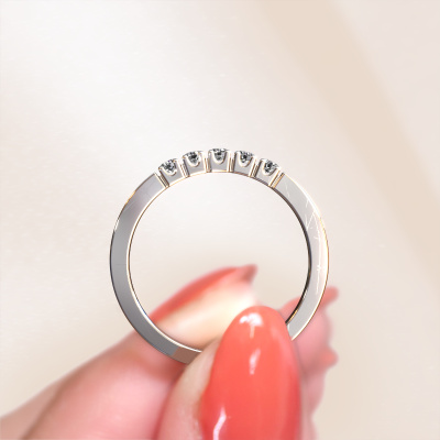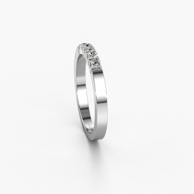 This extraordinary ring is called Dana 5. This type of ring is known as a memoire ring, because its gemstones are set in a continuous line. This makes it easy to combine with other rings. The band of this platinum ring is set in a combination of diamond and diamond 0.15 crt. You can easily choose the combination you prefer online. As you can see, a single diamond is set in this single alliance platinum ring. The memoire ring represents collaboration. And that is precisely what these gemstones do, collaborate. Together they add a beautiful effect to the band of a modern ring! Such a meaningful ring, wouldn't you agree? All of our hand selected diamonds are positioned by hand by our expert goldsmith. It's a precise task, which can only be completed successfully through the combination of pure craftsmanship and usage of the latest techniques which give it an optimal effect. To create a perfect reflection of light, all the gemstones have to be perfectly aligned in the same way. During manufacturing, the expert goldsmith will therefore monitor the reflection of light constantly to check whether the diamonds are aligned properly. This requires a skilled hand and a lot of patience but then the end product will be a true piece of art. And that is our mission!Because we design and deliver our own rings, we can offer you a ring at a price you won't find anywhere else. A ring is made to order, which helps prevent excess supplies, so we can make you a great price offer. We understand it feels risky, buying your ring online, but we will gladly assist in the designing process, taking your budget into consideration.New jewelry designs are added to our online collection daily. Our team of passionate designers strive to create extraordinary and diverse designs. Have you seen a ring you like? Please feel free to contact us. Based on a good price/ quality ratio, we will make you an offer you can't refuse!To make it easier for you, we offer a 30 day return policy. Check our terms and conditions.