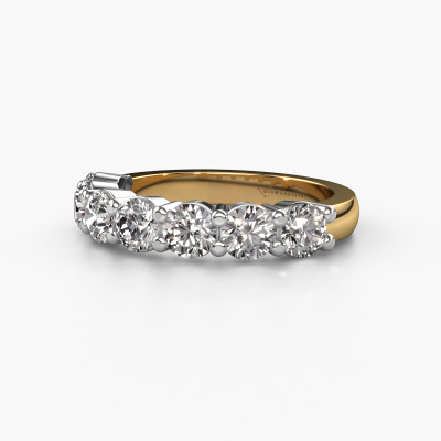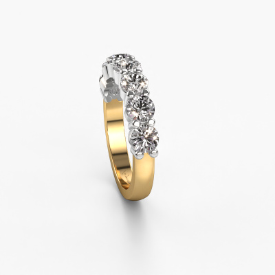 This extraordinary ring is called Yasmin 7. This type of ring is known as a memoire ring, because its gemstones are set in a continuous line. This makes it easy to combine with other rings. The band of this 14 Carat gold ring is set in a combination of diamond and lab-grown diamond 1.75 crt. You can easily choose the combination you prefer online. As you can see, a single diamond is set in this single alliance gold ring. The memoire ring represents collaboration. And that is precisely what these gemstones do, collaborate. Together they add a beautiful effect to the band of a classic ring! Such a meaningful ring, wouldn't you agree? All of our hand selected diamonds are positioned by hand by our expert goldsmith. It's a precise task, which can only be completed successfully through the combination of pure craftsmanship and usage of the latest techniques which give it an optimal effect. To create a perfect reflection of light, all the gemstones have to be perfectly aligned in the same way. During manufacturing, the expert goldsmith will therefore monitor the reflection of light constantly to check whether the diamonds are aligned properly. This requires a skilled hand and a lot of patience but then the end product will be a true piece of art. And that is our mission!After receiving your order, our goldsmiths will passionately start the creative process of making your ring in our own studio. Because we don't have a big stockpile, these costs will not be passed on to you. Our pricing is proof of that! We offer top quality jewels at lowest price, guaranteed.Our team of talented, passionate designers add new ring designs to our online collection daily. Our objective in doing so, is to be able to offer you a wide variety of jewels. Please feel free to request a quote if you have specific wishes for your ring. We guarantee to make you an offer you can't refuse.To make it easier for you, we offer a 30 day return policy. Check our terms and conditions.