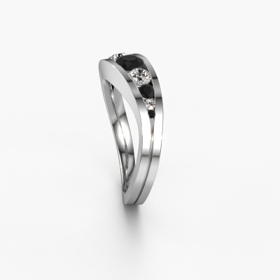 This ring called Sigrid 2 is made of 14 Carat white gold and is set with black diamond. Are you in the market for a unique white gold ring with a modern twist? Then this ring might suit you. Simply customize to your or her liking. It suits the contemporary modern woman. This 9 stones ring is set with beautiful black diamond. This has been carefully selected. Because your ring must be adorned with nothing but the most stunning gemstone. Our expert goldsmith will create your ring in our own studio, where the black diamond will be set with great care. The ring will then be polished to perfection to create a stunning ring. By using a combination of the latest modern techniques, combined with ancient crafting, we can make all our rings in our own studio. Each jewel is made to order. This is advantageous because we can offer you a price you won't find anywhere else.Our team of talented, passionate designers add new ring designs to our online collection daily. Our objective in doing so, is to be able to offer you a wide variety of jewels. Please feel free to request a quote if you have specific wishes for your ring. We guarantee to make you an offer you can't refuse.To make it easier for you, we offer a 30 day return policy. Check our terms and conditions.