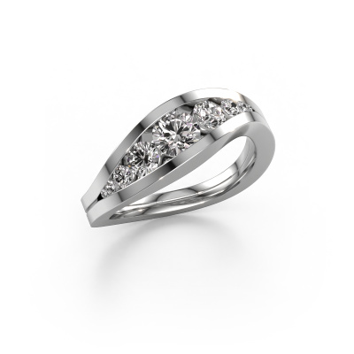 This ring called Sigrid 2 is made of platinum and is set with diamond. Are you in the market for a unique platinum ring with a modern twist? Then this ring might suit you. Simply customize to your or her liking. It suits the contemporary modern woman. This 9 stones ring is set with beautiful diamond. This has been carefully selected. Because your ring must be adorned with nothing but the most stunning gemstone. Our expert goldsmith will create your ring in our own studio, where the diamond will be set with great care. The ring will then be polished to perfection to create a stunning ring. By using a combination of the latest modern techniques, combined with ancient crafting, we can make all our rings in our own studio. Each jewel is made to order. This is advantageous because we can offer you a price you won't find anywhere else.Our team of talented, passionate designers add new ring designs to our online collection daily. Our objective in doing so, is to be able to offer you a wide variety of jewels. Please feel free to request a quote if you have specific wishes for your ring. We guarantee to make you an offer you can't refuse.To make it easier for you, we offer a 30 day return policy. Check our terms and conditions.
