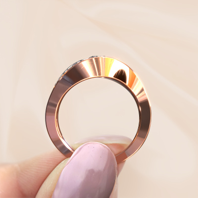 This ring called Sigrid 2 is made of 14 Carat rose gold and is set with diamond. Are you in the market for a unique rose gold ring with a modern twist? Then this ring might suit you. Simply customize to your or her liking. It suits the contemporary modern woman. This 9 stones ring is set with beautiful diamond. This has been carefully selected. Because your ring must be adorned with nothing but the most stunning gemstone. Our expert goldsmith will create your ring in our own studio, where the diamond will be set with great care. The ring will then be polished to perfection to create a stunning ring. By using a combination of the latest modern techniques, combined with ancient crafting, we can make all our rings in our own studio. Each jewel is made to order. This is advantageous because we can offer you a price you won't find anywhere else.Our team of talented, passionate designers add new ring designs to our online collection daily. Our objective in doing so, is to be able to offer you a wide variety of jewels. Please feel free to request a quote if you have specific wishes for your ring. We guarantee to make you an offer you can't refuse.To make it easier for you, we offer a 30 day return policy. Check our terms and conditions.