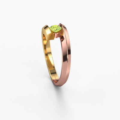 This ring called Paulette is made of 14 Carat rose gold and is set with peridot. Are you in the market for a unique rose gold ring with a modern twist? Then this ring might suit you. Simply customize to your or her liking. It suits the contemporary modern woman. This affordable ring is set with beautiful peridot. This has been carefully selected. Because your ring must be adorned with nothing but the most stunning gemstone. Our expert goldsmith will create your ring in our own studio, where the peridot will be set with great care. The ring will then be polished to perfection to create a stunning ring. After receiving your order, our goldsmiths will passionately start the creative process of making your ring in our own studio. Because we don't have a big stockpile, these costs will not be passed on to you. Our pricing is proof of that! We offer top quality jewels at lowest price, guaranteed.Our team of talented, passionate designers add new ring designs to our online collection daily. Our objective in doing so, is to be able to offer you a wide variety of jewels. Please feel free to request a quote if you have specific wishes for your ring. We guarantee to make you an offer you can't refuse.To make it easier for you, we offer a 30 day return policy. Check our terms and conditions.
