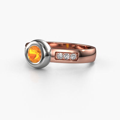This ring called Charlotte Round is made of 14 Carat rose gold and is set with citrin. Are you in the market for a unique rose gold ring with a modern twist? Then this ring might suit you. Simply customize to your or her liking. It suits the contemporary modern woman. This birthstones ring is set with beautiful citrin. This has been carefully selected. Because your ring must be adorned with nothing but the most stunning gemstone. Our expert goldsmith will create your ring in our own studio, where the citrin will be set with great care. The ring will then be polished to perfection to create a stunning ring. After receiving your order, our goldsmiths will passionately start the creative process of making your ring in our own studio. Because we don't have a big stockpile, these costs will not be passed on to you. Our pricing is proof of that! We offer top quality jewels at lowest price, guaranteed.Our team of talented, passionate designers add new ring designs to our online collection daily. Our objective in doing so, is to be able to offer you a wide variety of jewels. Please feel free to request a quote if you have specific wishes for your ring. We guarantee to make you an offer you can't refuse.To make it easier for you, we offer a 30 day return policy. Check our terms and conditions.
