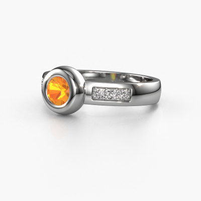 This ring called Charlotte Round is made of 14 Carat white gold and is set with citrin. Are you in the market for a unique white gold ring with a modern twist? Then this ring might suit you. Simply customize to your or her liking. It suits the contemporary modern woman. This birthstones ring is set with beautiful citrin. This has been carefully selected. Because your ring must be adorned with nothing but the most stunning gemstone. Our expert goldsmith will create your ring in our own studio, where the citrin will be set with great care. The ring will then be polished to perfection to create a stunning ring. After receiving your order, our goldsmiths will passionately start the creative process of making your ring in our own studio. Because we don't have a big stockpile, these costs will not be passed on to you. Our pricing is proof of that! We offer top quality jewels at lowest price, guaranteed.Our team of talented, passionate designers add new ring designs to our online collection daily. Our objective in doing so, is to be able to offer you a wide variety of jewels. Please feel free to request a quote if you have specific wishes for your ring. We guarantee to make you an offer you can't refuse.To make it easier for you, we offer a 30 day return policy. Check our terms and conditions.