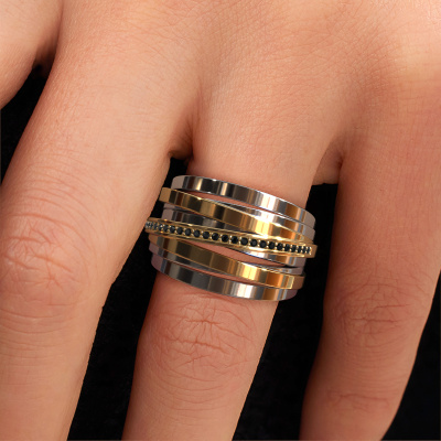 Because of its detailed finish, this wide ring with black diamond has a stylish appearance. A shanks ring that fits the contemporary woman like a glove. This white gold ring, our Swinda, is a true eye-catcher indeed! As soon as we know what you desire, we will create your ring in our own crafting studio. We work according an innovative process. We use a combination of the latest techniques and ancient traditional craftsmanship, so we are able to create a perfectly designed ring. Our expert goldsmiths strive for perfection so they won't stop until a perfect ring, a true work of art, is created especially for you!A customized unique ring is the perfect gift! New exquisite designs are added daily by our team of passionate goldsmiths. And each design can be customized. Simply customize the precious metals and the color of gemstones which will be used, for example. This makes your design of the unique Swinda ring truly unique!Because we design and deliver our own rings, we can offer you a ring at a price you won't find anywhere else. A ring is made to order, which helps prevent excess supplies, so we can make you a great price offer. We understand it feels risky, buying your ring online, but we will gladly assist in the designing process, taking your budget into consideration.To make it easier for you, we offer a 30 day return policy. Check our terms and conditions.