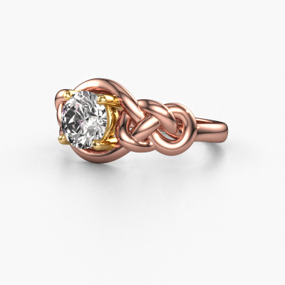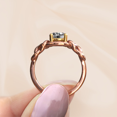 This symbolic rose gold Zoe ring is set with diamond. For some, a ring is nothing more than a beautiful fashion item but they can become a meaningful keepsake. A ring such as this can be worn daily and it matches numerous different styles. Designing your own unique ring, makes it even more special. You are reminded of its uniqueness every time you look at it. Perhaps it reminds you of someone special. It might bring back memories. Unforgettable moments, represented in one ring. The beauty of it all is that the used precious metals and gemstones will last a lifetime. A lifetime of memories deserves nothing less! The best part of this knot ring is that you can customize it to your own liking. Your style, your choice, your ring. On top of that, your Celtic rose gold ring will be made by hand with eco-friendly materials! Please feel free to easily customize the ring, using our online tool.By using our modern techniques, we can design and customize the finest quality jewels with the utmost care for you. Our rings are always priced 30 percent lower than other jewelers. We make rings to order, so we don't have to maintain a large stock. If you have a certain budget, we are more than happy to advice you accordingly.To make it easier for you, we offer a 30 day return policy. Check our terms and conditions.