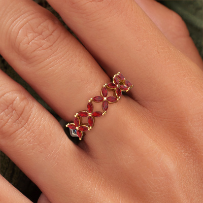 This Bree ring in 14 Carat white gold is set with ruby. This white gold stacked Bree ring is the perfect addition to your ring collection! As the name suggests, it is a ring which can be combined on one finger with another ring. It gives you the opportunity to create your own style. A stacked ring usually represents a certain memory of someone special or a memorable moment. It is common to combine a stacked ring, representing an anniversary, with a wedding ring. But this cluster ring, combined with your other rings, also makes a classy fashion item. The best part of this cluster ring is that you can customize it to your own liking. Your style, your choice, your ring. On top of that, your vintage white gold ring will be made by hand with eco-friendly materials! Please feel free to easily customize the ring, using our online tool.By using a combination of the latest modern techniques, combined with ancient crafting, we can make all our rings in our own studio. Each jewel is made to order. This is advantageous because we can offer you a price you won't find anywhere else.To make it easier for you, we offer a 30 day return policy. Check our terms and conditions.