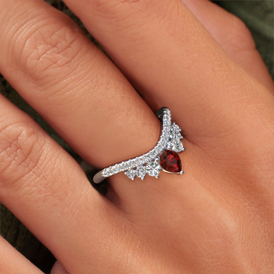 This Crown B stackable ring in 14 Carat white gold is set with garnet. This white gold stacked Crown B ring is the perfect addition to your ring collection! As the name suggests, it is a ring which can be combined on one finger with another ring. It gives you the opportunity to create your own style. A stacked ring usually represents a certain memory of someone special or a memorable moment. It is common to combine a stacked ring, representing an anniversary, with a wedding ring. But this daring ring, combined with your other rings, also makes a classy fashion item. As soon as you finished designing your Crown B stackable ring with our online tool, our goldsmiths will start their creative process of making your ring. This will be done with passion and care, according ancient crafting. On top of that, our jewels are made of eco-friendly materials. Simply customize online with our online tool, if you want any changes made. If you want specific changes made to your Crown B stackable ring, that are unavailable in our online tool, please feel free to contact our expert designers.By using our modern techniques, we can design and customize the finest quality jewels with the utmost care for you. Our rings are always priced 30 percent lower than other jewelers. We make rings to order, so we don't have to maintain a large stock. If you have a certain budget, we are more than happy to advice you accordingly.To make it easier for you, we offer a 30 day return policy. Check our terms and conditions.