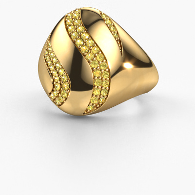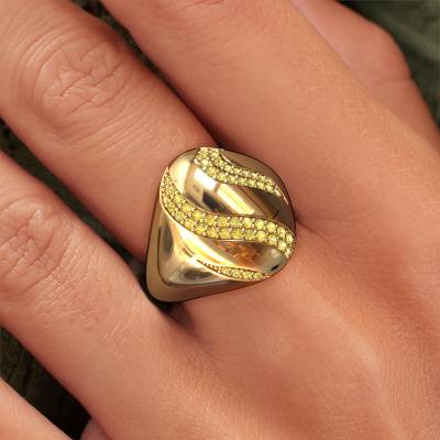 How would you describe your own style? Are you looking for something uniquely different? This pavé set gold Vilma ring is astonishing! Simply customize to your or her own liking. This ring is set with yellow sapphire. These yellow sapphire have been carefully selected because your ring must be adorned with nothing but the most beautiful gemstone. Wouldn't you agree? Our expert goldsmith will create your ring in our own crafting studios, where the yellow sapphire will be set with care. The ring will then be polished to perfection to give it that extra sparkle. It's a perfect ring for a woman of excellent taste!How do you like this design gold ring? Simply customize this Vilma ring, using our online tool. Subsequently, your personal pavé set Vilma ring will be made by hand by our goldsmiths. Precious metals and gemstones can be customized to your liking. Do you have specific preferences which are unavailable in our online tool? Please feel free to contact us. We will customize your personal design ring to your liking.After receiving your order, our goldsmiths will passionately start the creative process of making your ring in our own studio. Because we don't have a big stockpile, these costs will not be passed on to you. Our pricing is proof of that! We offer top quality jewels at lowest price, guaranteed.To make it easier for you, we offer a 30 day return policy. Check our terms and conditions.