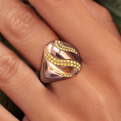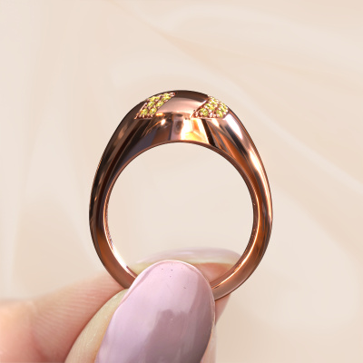 How would you describe your own style? Are you looking for something uniquely different? This pavé set rose gold Vilma ring is astonishing! Simply customize to your or her own liking. This ring is set with yellow sapphire. These yellow sapphire have been carefully selected because your ring must be adorned with nothing but the most beautiful gemstone. Wouldn't you agree? Our expert goldsmith will create your ring in our own crafting studios, where the yellow sapphire will be set with care. The ring will then be polished to perfection to give it that extra sparkle. It's a perfect ring for a woman of excellent taste!How do you like this design rose gold ring? Simply customize this Vilma ring, using our online tool. Subsequently, your personal pavé set Vilma ring will be made by hand by our goldsmiths. Precious metals and gemstones can be customized to your liking. Do you have specific preferences which are unavailable in our online tool? Please feel free to contact us. We will customize your personal design ring to your liking.After receiving your order, our goldsmiths will passionately start the creative process of making your ring in our own studio. Because we don't have a big stockpile, these costs will not be passed on to you. Our pricing is proof of that! We offer top quality jewels at lowest price, guaranteed.To make it easier for you, we offer a 30 day return policy. Check our terms and conditions.