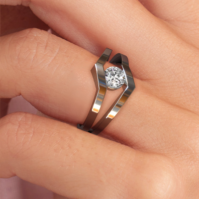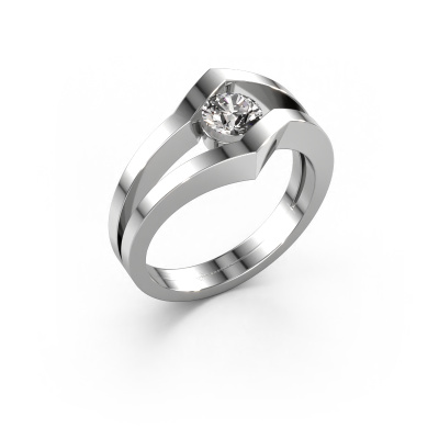 This ring called Elize is made of 14 Carat white gold and is set with diamond. Are you in the market for a unique white gold ring with a modern twist? Then this ring might suit you. Simply customize to your or her liking. It suits the contemporary modern woman. This edgy ring is set with beautiful diamond. This has been carefully selected. Because your ring must be adorned with nothing but the most stunning gemstone. Our expert goldsmith will create your ring in our own studio, where the diamond will be set with great care. The ring will then be polished to perfection to create a stunning ring. Are you on a budget? Please feel free to contact us, so we can go discuss your options. We offer our rings at guaranteed best price, because we make them to order. You won't find such a price anywhere else!New jewelry designs are added to our online collection daily. Our team of passionate designers strive to create extraordinary and diverse designs. Have you seen a ring you like? Please feel free to contact us. Based on a good price/ quality ratio, we will make you an offer you can't refuse!To make it easier for you, we offer a 30 day return policy. Check our terms and conditions.