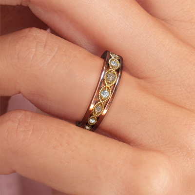Do you have a vintage fetish? Then this rose gold Laine stackable ring suits you perfectly. It's a contemporary design, based on vintage designs. A slightly romantic, extraordinary design! Even more when you customize to your liking. This elegant stackable ring is set with exquisite brown diamonds. As you can see, you can simply choose a gemstone that matches your style. Each gemstone is carefully selected by our merchants whom are spread throughout the world. Nothing but the best gems for our expert goldsmith! After all, it is his crowning glory!A customized vintage stackable ring is the perfect gift! New exquisite designs are added daily by our team of passionate goldsmiths. And each design can be customized. Simply customize the precious metals and the color of gemstones which will be used, for example. This makes your design of the vintage Laine stackable ring truly unique!Because we design and deliver our own rings, we can offer you a ring at a price you won't find anywhere else. A ring is made to order, which helps prevent excess supplies, so we can make you a great price offer. We understand it feels risky, buying your ring online, but we will gladly assist in the designing process, taking your budget into consideration.To make it easier for you, we offer a 30 day return policy. Check our terms and conditions.