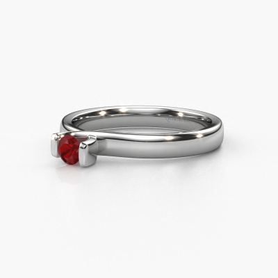 This ring called Noor is made of platinum and is set with ruby. Are you in the market for a unique platinum ring with a modern twist? Then this ring might suit you. Simply customize to your or her liking. It suits the contemporary modern woman. This elegant ring is set with beautiful ruby. This has been carefully selected. Because your ring must be adorned with nothing but the most stunning gemstone. Our expert goldsmith will create your ring in our own studio, where the ruby will be set with great care. The ring will then be polished to perfection to create a stunning ring. Are you on a budget? Please feel free to contact us, so we can go discuss your options. We offer our rings at guaranteed best price, because we make them to order. You won't find such a price anywhere else!Our team of talented, passionate designers add new ring designs to our online collection daily. Our objective in doing so, is to be able to offer you a wide variety of jewels. Please feel free to request a quote if you have specific wishes for your ring. We guarantee to make you an offer you can't refuse.To make it easier for you, we offer a 30 day return policy. Check our terms and conditions.