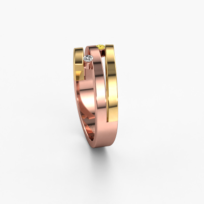 This ring called Roxane is made of 14 Carat rose gold and is set with yellow sapphire. Are you in the market for a unique rose gold ring with a modern twist? Then this ring might suit you. Simply customize to your or her liking. It suits the contemporary modern woman. This elegant ring is set with beautiful yellow sapphire. This has been carefully selected. Because your ring must be adorned with nothing but the most stunning gemstone. Our expert goldsmith will create your ring in our own studio, where the yellow sapphire will be set with great care. The ring will then be polished to perfection to create a stunning ring. After receiving your order, our goldsmiths will passionately start the creative process of making your ring in our own studio. Because we don't have a big stockpile, these costs will not be passed on to you. Our pricing is proof of that! We offer top quality jewels at lowest price, guaranteed.Our talented designers add new designs to our online collection daily. Together they create a diverse collection of the finest jewelry. If you prefer to make a ring according your own design, please feel free to request a quote. We will make you an amazing offer, based on quality and price.To make it easier for you, we offer a 30 day return policy. Check our terms and conditions.