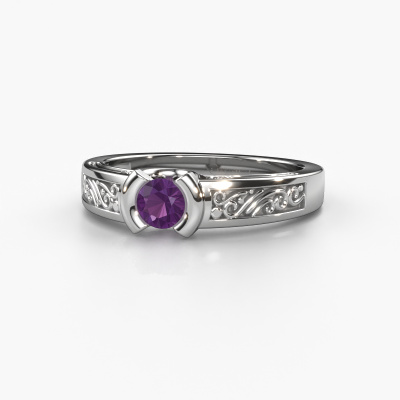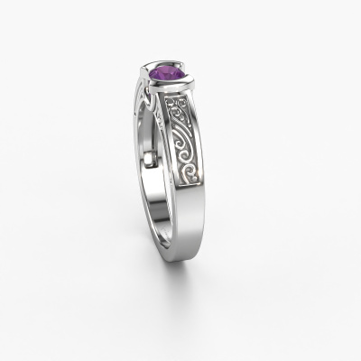 Do you have a vintage fetish? Then this white gold Elena ring suits you perfectly. It's a contemporary design, based on vintage designs. A slightly romantic, extraordinary design! Even more when you customize to your liking. This elegant ring is set with exquisite amethysten. As you can see, you can simply choose a gemstone that matches your style. Each gemstone is carefully selected by our merchants whom are spread throughout the world. Nothing but the best gems for our expert goldsmith! After all, it is his crowning glory!As soon as you finished designing your Elena ring with our online tool, our goldsmiths will start their creative process of making your ring. This will be done with passion and care, according ancient crafting. On top of that, our jewels are made of eco-friendly materials. Simply customize online with our online tool, if you want any changes made. If you want specific changes made to your Elena ring, that are unavailable in our online tool, please feel free to contact our expert designers.Are you on a budget? Please feel free to contact us, so we can go discuss your options. We offer our rings at guaranteed best price, because we make them to order. You won't find such a price anywhere else!To make it easier for you, we offer a 30 day return policy. Check our terms and conditions.