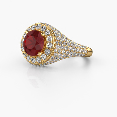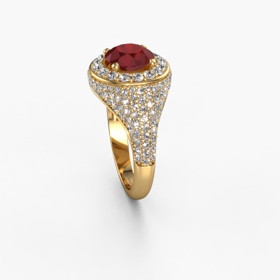 This pave set ring is called Dayle. This 14 Carat gold ring is set with ruby 7 mm. The band of this gold ring is set with rows of ruby which seem to have no beginning nor end. Our goldsmith carefully selects the gemstones and sets them with the utmost precision. For maximum shine, the ruby have to align perfectly. While artfully crafting and polishing the jewelry, light fall is constantly monitored, until the expert goldsmith is satisfied with the result. Designed by you, created especially for you!The best part of this elegant ring is that you can customize it to your own liking. Your style, your choice, your ring. On top of that, your exclusive gold ring will be made by hand with eco-friendly materials! Please feel free to easily customize the ring, using our online tool.Are you on a budget? Please feel free to contact us, so we can go discuss your options. We offer our rings at guaranteed best price, because we make them to order. You won't find such a price anywhere else!To make it easier for you, we offer a 30 day return policy. Check our terms and conditions.