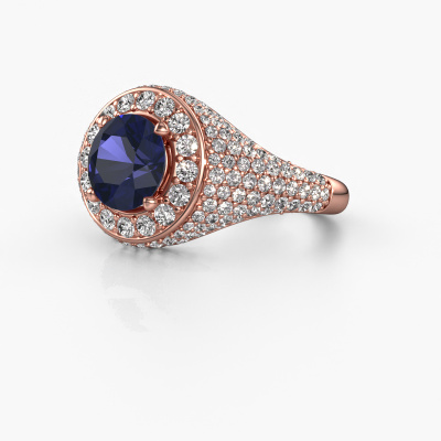 This pave set ring is called Dayle. This 14 Carat rose gold ring is set with sapphire 7 mm. The band of this rose gold ring is set with rows of sapphire which seem to have no beginning nor end. Our goldsmith carefully selects the gemstones and sets them with the utmost precision. For maximum shine, the sapphire have to align perfectly. While artfully crafting and polishing the jewelry, light fall is constantly monitored, until the expert goldsmith is satisfied with the result. Designed by you, created especially for you!The best part of this elegant ring is that you can customize it to your own liking. Your style, your choice, your ring. On top of that, your exclusive rose gold ring will be made by hand with eco-friendly materials! Please feel free to easily customize the ring, using our online tool.Are you on a budget? Please feel free to contact us, so we can go discuss your options. We offer our rings at guaranteed best price, because we make them to order. You won't find such a price anywhere else!To make it easier for you, we offer a 30 day return policy. Check our terms and conditions.